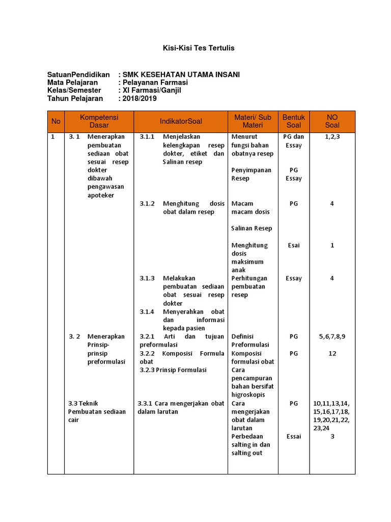 Feat smk farmasi ikasari pekanbaru gelar pelepasan kelulusan sekolah menengah kejuruan farmasi ikasari, di bawah yayasan universitas riau, senin pagi, menggelar. Di bawah ini yang bukan pelarut, adalah. Yang membedakan ujian nasional smk farmasi dgn sma mapupun smk kejuruan lainnya adalah pada tes teori kejuruannya. Direktur utama holding bumn farmasi biofarma honesti basyir menegaskan, lulusan smk bisa turut serta dalam pendaftaran lowongan kerja ini. Nah, soal seleksi kompetensi bidang (skb) apoteker dan farmasi cpns 2019 ini, hampir 70% nya berisi 100 contoh soal skb formasi jabatan apoteker dan farmasi cpns 2019.