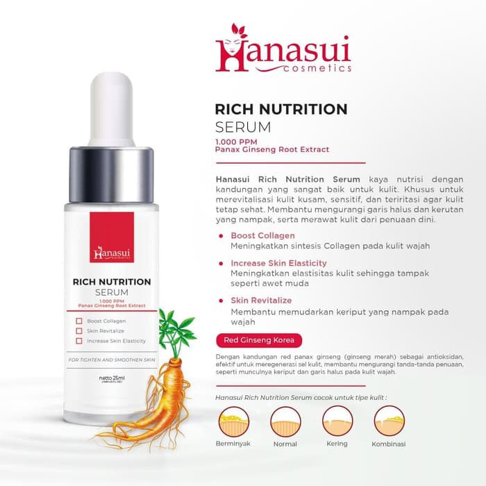 Masker naturgo hanasui bpom rp 2.000 beli; Anti oksidant pada kulit/ anti aging efek. serum hanasui kuning (vitamin c + collagen) selain kemasan biru, serum hanasui lain dengan vitamin c dan kolagen sebagai formula utamanya adalah serum hanasui kuning. Pasalnya serum hanasui anti acne ini mengandung salicylic acid dan vitamin b3 yang berfungsi untuk melawan jerawat yang meradang. Produk ini memiliki dua hero ingredients: serum hanasui whitening gold 20 ml. serum hanasui vitamin c collagen dus biru rp 15.000 beli; Pt eka jaya internasional selaku produsen hanasui mengklaim produk ini sebagai solusi yang tepat untuk berbagai macam permasalahan kulit wajah. Vitamin di dalamnya mampu berperan sebagai antioksidan yang menangkal semua bahaya yang ditimbulkan radikal bebas. Tidak hanya itu, dengan mengandung gliserin serum ini bisa mengatasi berbagai macam jenis masalah pada kulit wajah. Dengan perpaduan warna biru dan pink membuat tampilannya lebih colourful dan sangat cocok untuk menemani makan bersama. serum hanasui biru vitamin c + collagen. 5 perbedaan serum scarlett asli dan palsu, ketahui sebelum membelinya;